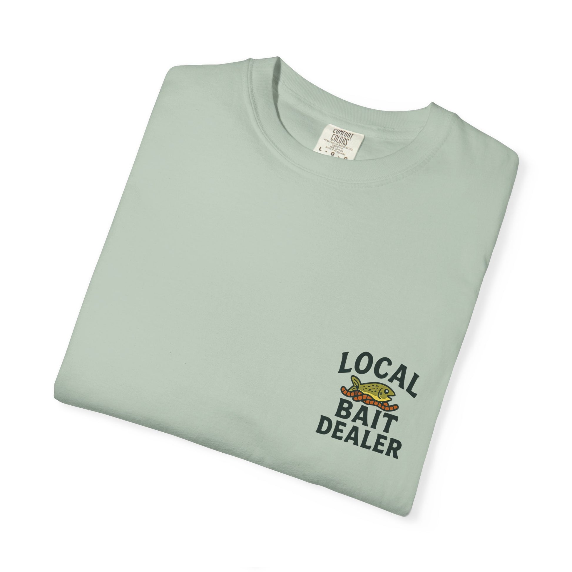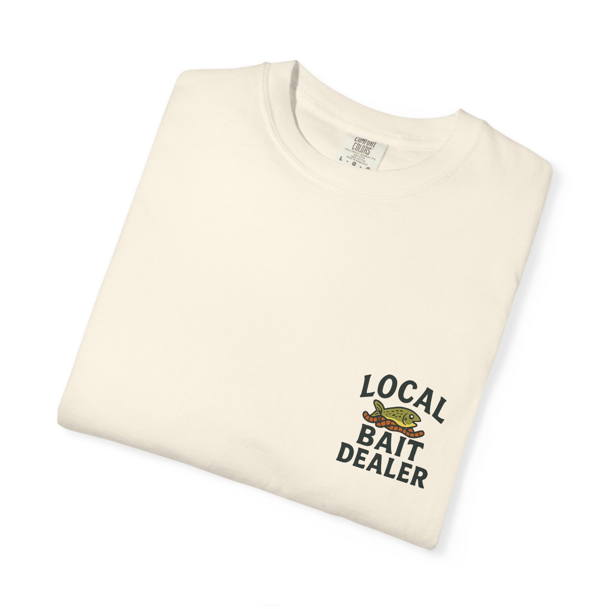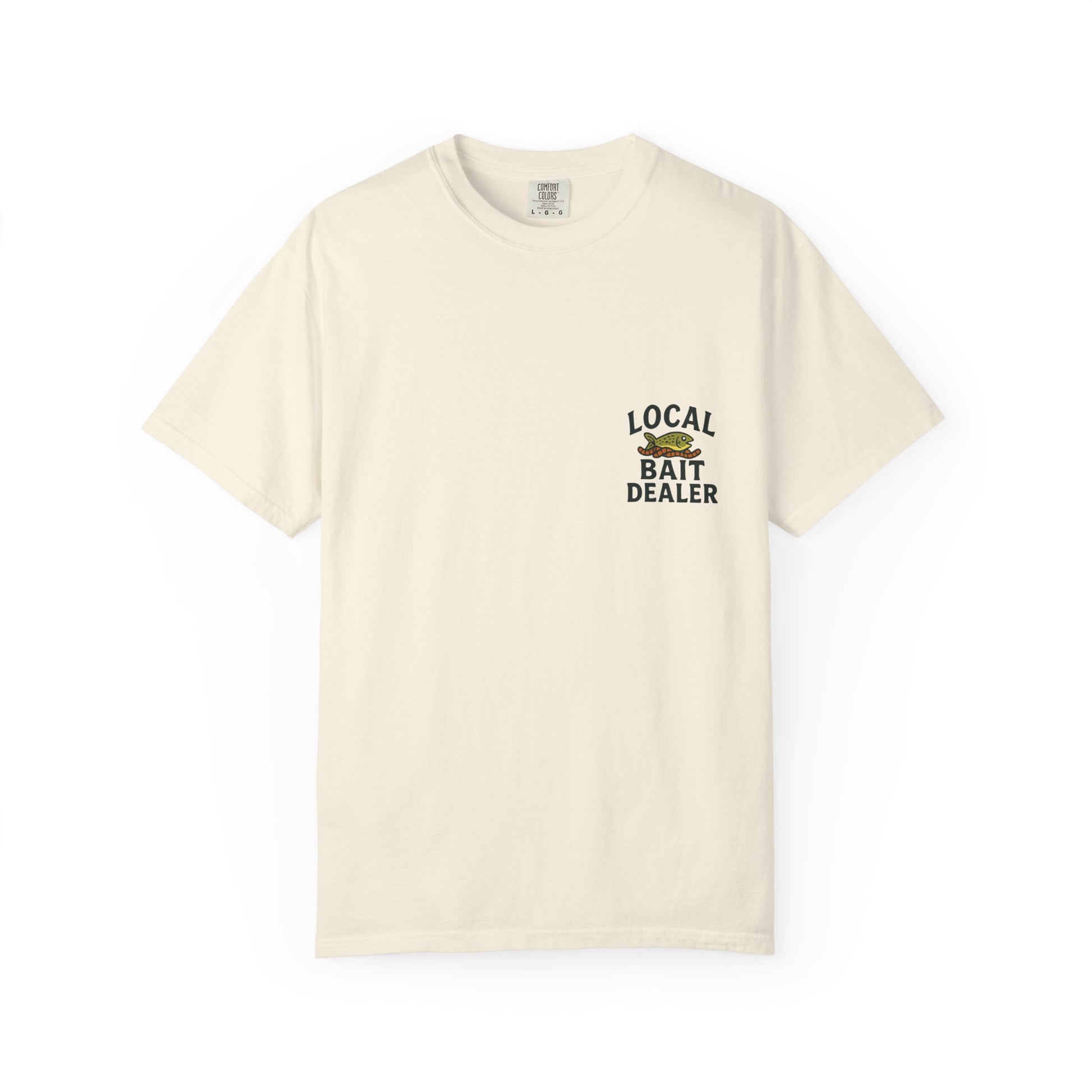 Supplying what the crew needs — worms, fish, and good times. The Local Bait Dealer tee keeps it light on the dock and cold at the bar. Built for the ones who always show up ready to fish and ready to drink.